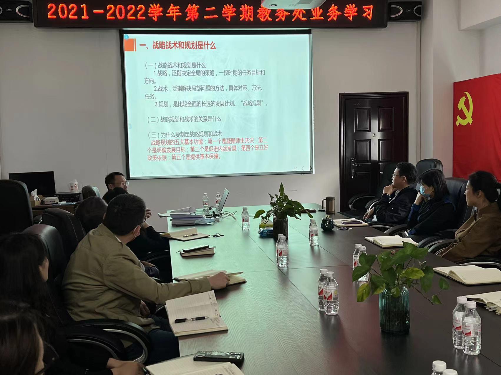 郭处长主要从战略战术和规划是什么、大学教育规划是什么、本科人才培养规划是什么和大学教育规划怎么落实四个方面展开,引用了牛津大学等国外大学和清华大学等我国兄弟院校战略规划的案例,重点对我校“十四五”规划中的本科人才培养规划部分进行了解读。郭处长指出,我们搞人才培养工作的,要坚持立德树人,服务国家战略、社会需求、地方发展,本科人才培养也要注重科教融合、产教融合,不断提升学生学习能力、教师教学能力、学生实践创新能力,为国家加快建设世界重要人才中心和创新高地做出应有的贡献。郭处长强调,对一所大学来说,战略规划、战略实施、战略评估环环相扣,都非常重要,但战略规划一旦制定后,执行落实就尤为重要,要做到以下五点:增强战略思维和战术素养、坚持目标导向和闭环管理、坚持依法治校和实事求是、弘扬伟大建党精神,永葆战斗精神、善于有所作为和务实创新。最后,郭处长将多年的工作心得与教务处的全体同志分享,要相信“玉汝于成、功不唐捐”,要力求“持之以恒、久久为功”,要做到“善始善终、善作善成”。