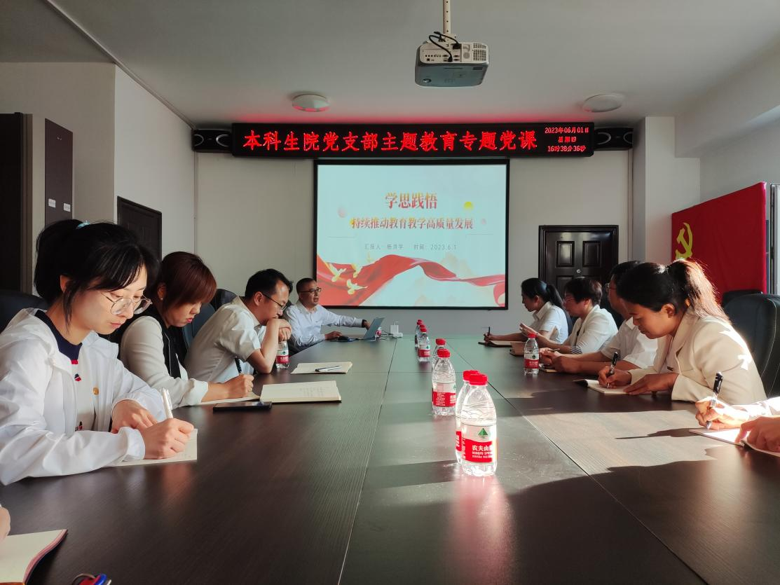 按照深入开展学习贯彻习近平新时代中国特色社会主义思想主题教育安排部署,6月1日下午,本科生院党支部在综合办公楼508举行主题教育专题党课学习活动,本科生院副院长兼培养处处长、教师教学发展中心主任、创新创业中心主任杨洪学做了题为《学思践悟 持续推动教育教学改革高质量发展》的专题党课。本科生院全体党员参加学习活动。