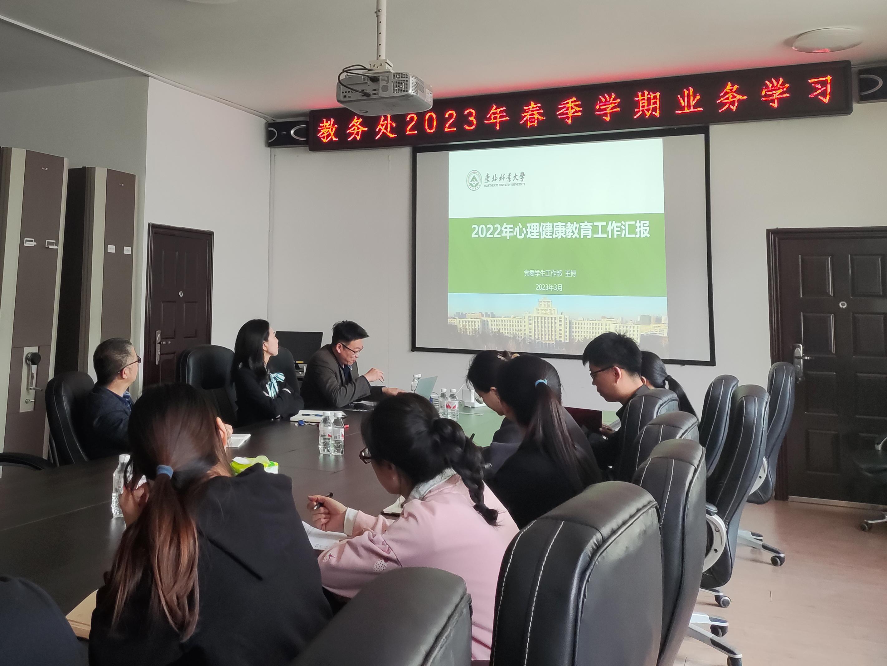 3月29日下午,教务处党支部在综合办公楼508会议室开展业务学习,校党委学生工作部部长兼党委武装部部长、学生处处长王博做了题为《2022年心理健康教育工作汇报》的报告。教务处副处长赵璐璐主持本次学习活动,教务处全体党员、职工参加学习。