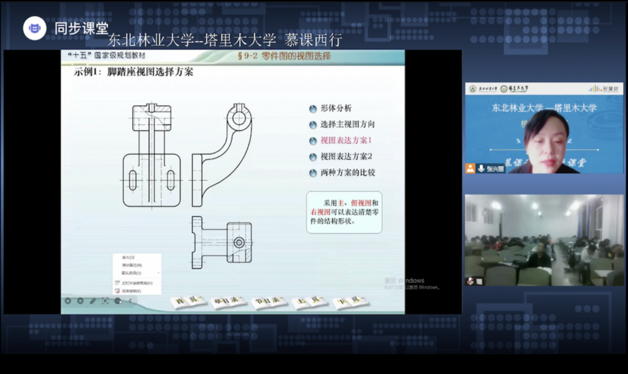 为积极响应教育部“慕课西部行”号召,深入推进信息化教学手段和教学方法改革创新,实现优质教育资源在东西部互通共享,11月2日18:00,一堂跨越千里的《机械工程制图》同步课堂在东北林业大学和塔里木大学的学生中开课,进行了一场横跨时空的沉浸式远程直播,这是我校本学期开展的第二期“慕课西行”同步课程。
