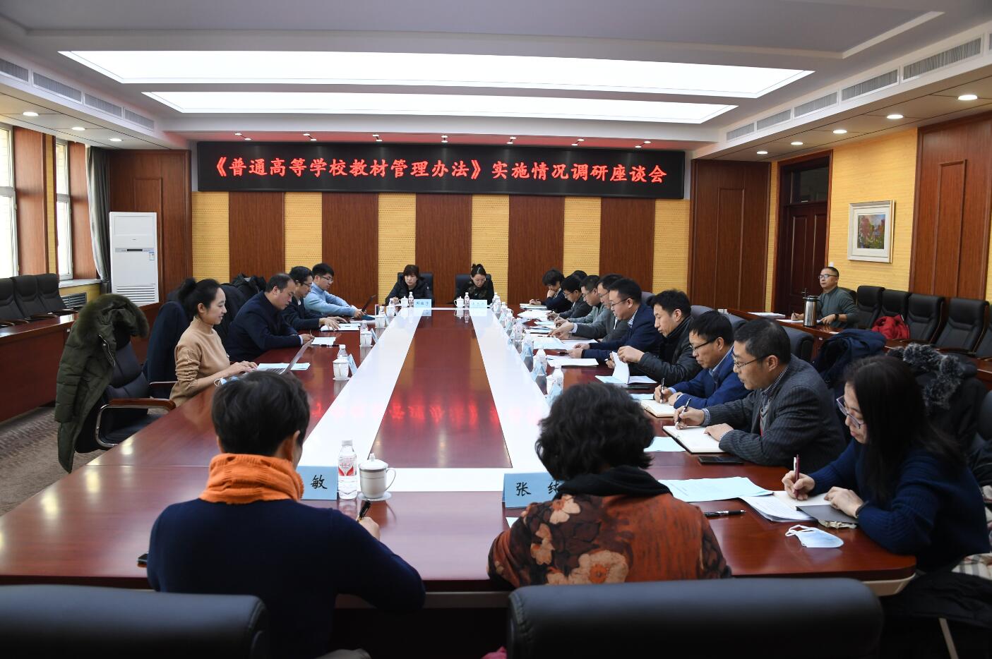 2020年12月11日,由东北师范大学副校长王占仁教授带队,受教育部教材局委托的课程教材研究所和高等教育出版社共同承担的《普通高等学校教材管理办法》(以下简称《办法》)实施情况跟踪研究课题组一行四人来到我校,就《办法》颁布一年来我校实施情况进行调研。学校党委常委、副校长宋文龙,教务处、研究生院、继续教育学院、出版社、双一流学院、使用马工程重点教材的相关学院负责人及教师代表参加座谈会。会议由教务处处长李明泽主持。