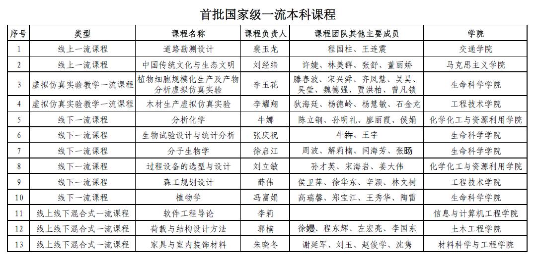 近日,教育部公布首批国家级一流本科课程认定结果, 我校13门课程入选,包括线上一流课程2门,虚拟仿真实验教学一流课程2门,线下一流课程6门, 线上线下混合式一流课程3门。