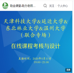 5月11日晚,我校联合延边大学、天津科技大学、温州大学特邀上海交通大学余建波教授做“在线教学课程考核设计与实践”专题培训。活动得到校内外教师广泛响应,两千两百余名教师通过腾讯助金课堂参加了学习。