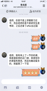 李丹丹老师在课堂内外积极与学生互动,通过线上提问,联系实际、课堂测验、进行讲解的方式活跃课堂气氛。例如以“铁轨难题”作为教学案例,让学生展开讨论,氛围十分热烈,大家一直认为“开放式的问题,会让我们引申出很多不同的观点,不同专业所得出的结论也有所不同,这正是辩证法的魅力所在。正如“铁轨难题”,在面对疫情防控的今天,我们应该以何种道德态度应对重大突发性问题,这是值得我们深深思考的。”课后,仍然有很多同学通过QQ进行询问,也说明了学生们对哲学有着浓厚的兴趣。“在线课堂没有下课,只要学生需要,我的头像一直都亮”李丹丹老师这样说到。