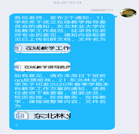 在学校下发网络教学授课方案后,李老师克服了家里孩子小、无人照看等生活困难,从参加教学培训入手,不断对比授课平台、授课工具的性能,研究教学方法,设计教学内容,精心备课。经过不断探索与实践,确定了“学习通+腾讯会议直播+QQ群辅导”线上线下混合式教学模式,在授课过程中,通过签到、问卷调查等方式及时关注学生的学习动态和学习状况,收到良好的课堂教学效果。李老师表示,在线授课是全新的挑战,老师不仅要当好“主播”和“主管”,更要让学生听得懂,看的清,学的好。就这样,在贯彻执行“停课不停学、停课不停教”文件精神过程中,李老师用自己的实际行动履行着师者诲人不倦的教育担当。