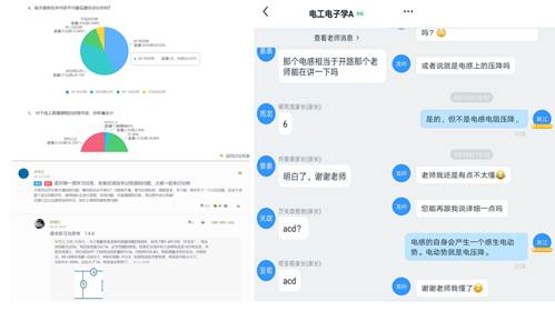 “工科老师,攻克难题”,理应责无旁贷。根据《电工电子学》等在线课程资源的运行情况和成熟程度,教研室集体讨论确立了“在线自学+钉钉APP和QQ群直播平台+学习通”的在线课程平台组合模式,直播过程采用BOPPPS六步有效教学法,老师们变身“主播”,精心设计每一个教学环节,重视学生的参与度,吸引学生的注意力。一是使用钉钉APP和QQ直播平台,提前一周向学生发布学习任务和资源,直播中主要答疑教学平台上的测验反馈和讨论区共性问题,同时开展课前测验、以练带学、随机连麦抢答互动等,给定评价和课程分数。二是发挥学习通和在线课程平台作用,采集、反馈和评价自学过程和直播课堂的学习数据。三是适时开展教学反馈问卷调查,及时解决授课中遇到的问题。