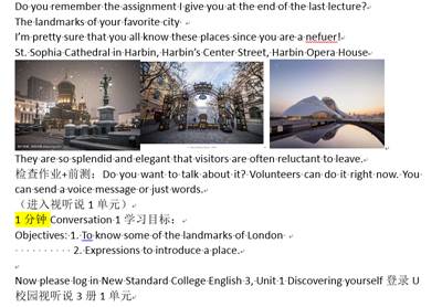 大学英语第一教研室严格执行校、院两级党委部署,按《东北林业大学本课课程在线教学工作方案》和《外国语学院疫情期间本课教学安排计划》文件要求,确保本教研室承担的2019级全校本科基础英语教学工作顺利开展,保障每位学生在疫情期间“停课不停学”。教研室迅速成立疫情期间在线教学计划讨论组,综合考虑大学英语课程的实际教学情况,基于“因课制宜”原则,反复研讨,制定了精准高效的在线教学方案。讨论组负责人们极尽所能,在开学前对可供使用的多种平台以及各平台交互组合模式进行测试,期望将在线外语课堂以最优质的方式展现给同学们。