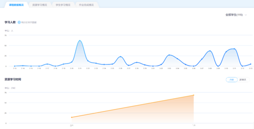 充分利用线上教学平台功能,完善课程资源建设,做好开课前的准备工作。在前期所积累的丰富课程资源基础上,李老师利用寒假时间对其进行了进一步补充、优化。根据在线教学进度推进情况,提前一周在翻转课堂上发布相关教学资料。根据即将进行的课程教学,布置课前任务。利用所采用的智慧树平台提供的学情数据实时掌握学生的课前学习状态和相关课前任务完成质量,从而为更有针对性地开展在线课堂教学提供依据所示。