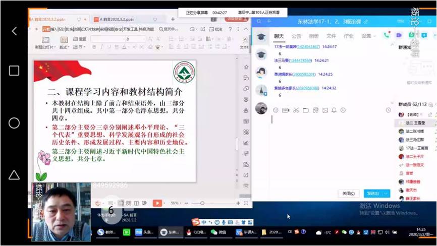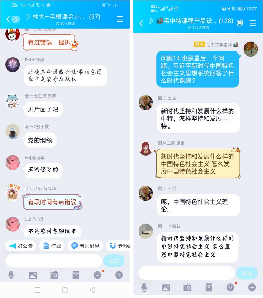 “我们只上了‘毛泽东思想和中国特色社会主义理论体系’一门课,只看到了您一个老师”,这是在线教学第一周部分学生的感慨。没有什么比学生的肯定更高的褒奖了。这一刻,概论课教师更加坚定上好思政课的决心和信心。概论教研部在2016年建设了毛泽东思想和中国特色社会主义理论体系概论课的在线课,教学资源丰富,并且运用多年。概论教研部“QQ群直播课堂+超星学习通平台”在线授课模式。通过直播教学,不仅实现了和课堂教学一样的效果,而且更加方便了教学,提升了教学效果。