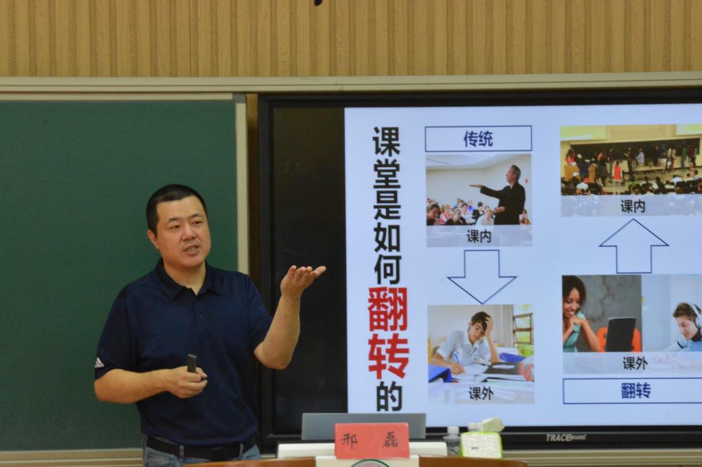 为进一步推进教学方法改革,提升我校教师课堂教学能力,6月20日,教务处(教师教学发展中心)特邀新教学法和教育技术方面专家,上海交通大学教师教学发展中心邢磊博士,做了主题为《翻转课堂的理念、方法与实务》和《微课制作》名师工作坊,活动由教务处副处长赵璐璐主持。