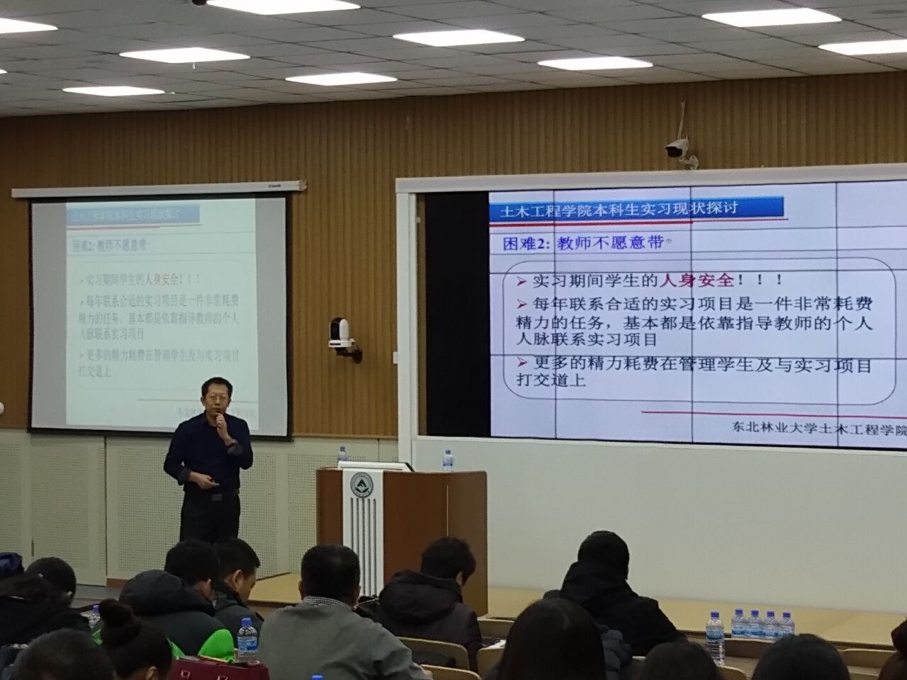 会上,土木工程学院教学院长程东辉老师应邀作题为《本科生带薪顶岗实习工作汇报》的报告。程东辉副院长从土木工程学院本科生实习现状探讨、土木工程学院带薪顶岗实习实施状况、带薪顶岗实习反馈与总结、对带薪顶岗实习的几点思考等四个方面进行讲解,分享了面对企业不愿意收、教师不愿意带、学生不愿意参加的情况下,学院采取的措施;进一步阐述了学院对“带薪顶岗实习”的理解以及对企业的界定。此次经验交流会的召开,对我校人才培养工作起到了积极的推动作用。