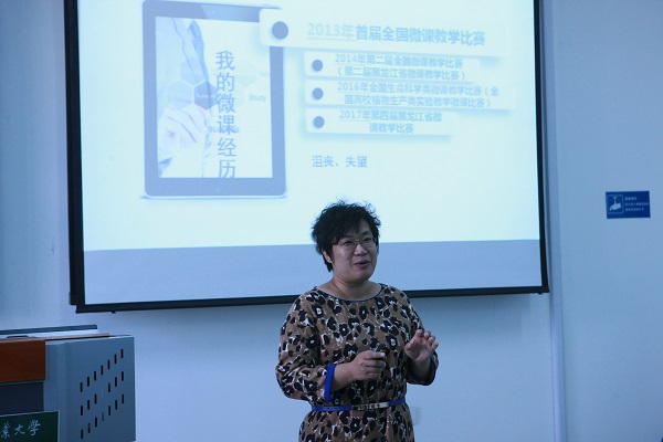 张韫老师结合主讲的《土壤学实验》课程,谈了自己对微课建设的认识和体会。她4次参加微课教学比赛,她从最初的沮丧、失望到在省、全国微课教学比赛中获奖,总结出好的微课必须做到:一是要热爱学生和课堂,二是要有优秀的教学设计,三是要有经典案例。同时,她阐述了微课应用对自己教学效果的积极促进作用。她深刻认识到,微课是对传统的教学的革新,能更好地满足学生对不同学科知识点的个性化学习,既可查缺补漏又能强化巩固知识,是对传统课堂学习的一种重要补充和拓展资源。