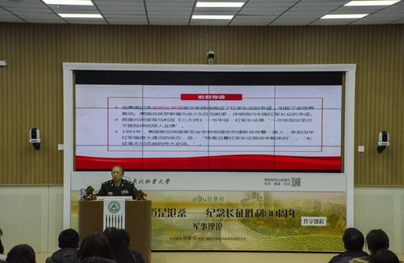 10月25日下午,东西部联盟共享学分课程《军事理论》全国第二次直播见面课在我校丹青楼425教室进行主场直播。国防大学战役教研部原副主任孙景伟将军,向现场的我校200余名学生及通过网络直播参与课程的35万名学生以“人间正道是沧桑——纪念长征胜利80周年”为题,讲述了长征的故事。