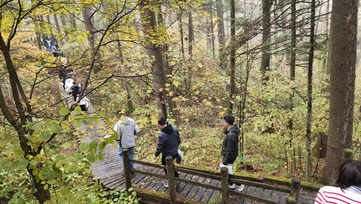 生态文明实践课程主讲教师黄颖利教授向教师们解读了东林的精神谱系和生态文明文化。黄颖利强调,森林“四库”,一头连着国家战略,一头连着百姓福祉,是“国之大者”,也是民生关切,更是林草人的责任担当。教师们沿着“少奇小道”向森林深处进发,登上防火瞭望塔俯瞰雾气笼罩下的苍山林海,踏上科普宣教栈道体验原始森林的野性魅力。“守护绿水青山,铸牢生态屏障,勇担绿色使命,建设美丽中国”的口号声响彻在凉水,也浸润在心间。
