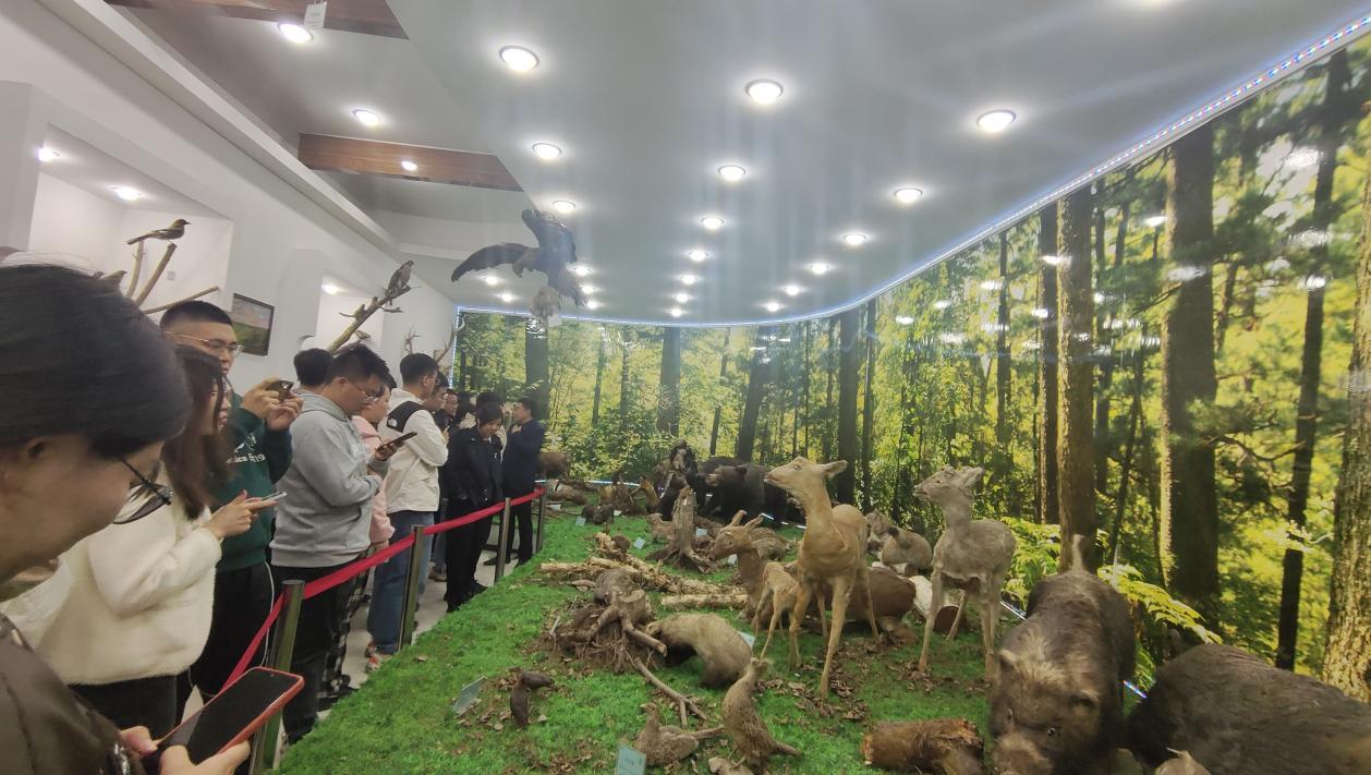 在凉水实验林场场长于纪航和相关人员的带领下,全体新教师穿越原始森林,深入大山,与大自然展开亲密接触。林场办公室主任孙虎为教师们详细讲解了小兴安岭生态文明建设的点点滴滴,并组织了一场消防演练。通过活动,教师们充分认识到了森林防火的重要性,加深了守护原始森林的责任感和使命感。在参观场部展室时,于纪航场长从植被类型、自然资源、生态文明教育、历史沿革与管理等方面向教师们详细介绍了凉水自然保护区。标本室里,种类繁多的菌类、形态各异的兽类和见证历史的百年树木引来教师们的阵阵惊叹。教师们不仅深入体验了苍翠朦胧、幽深神秘的林海景观,更是深刻理解了“以保护为基础,以科学研究为中心,保护、科研、宣教相结合”的凉水精神。