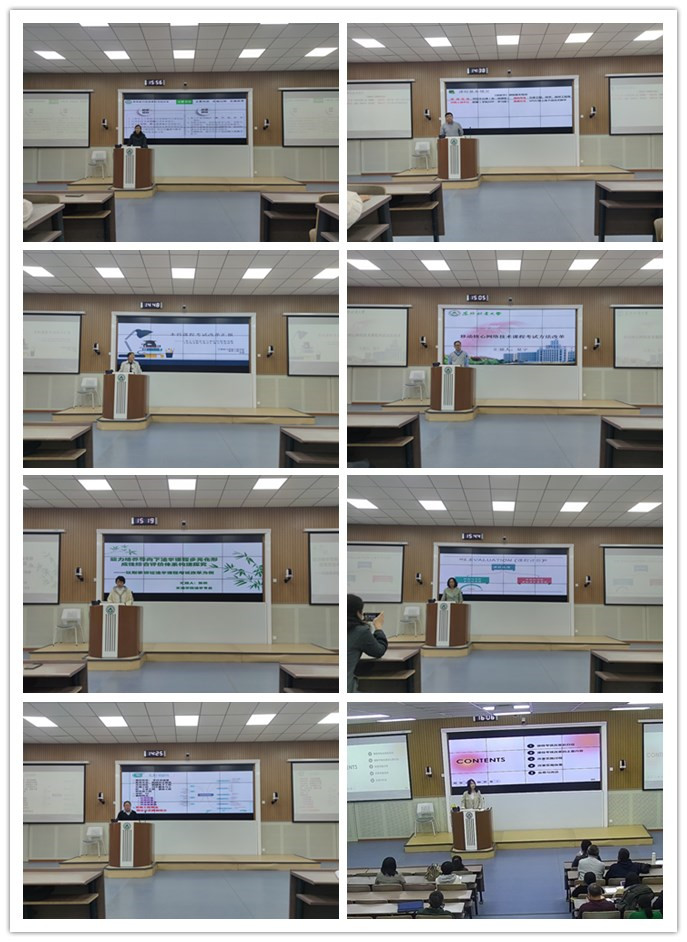 陈晖、李秋实、李琰、夏宇、张镝、齐艳、舒海英、杨宛萤8位来自不同学院的教师代表结合自身所授课程的实际情况,分享了他们在考核方法改革方面的心得体会。他们分别以“循序渐进案例驱动机械制造基础考试方法改革”、“‘测量学课程’多维度综合性全过程评价体系建立”、“基于工程认证与项目经验驱动的《系统分析与设计》混合考试改革”、“移动核心网络技术课程考试方法改革案例汇报”、“能力培养导向下法学课程多元化形成性综合评价体系构建探究”、“大学英语‘全过程考核-非标准答案’考试模式探索与实施”、“基于产出导向法的大学英语读写课程非标准化考试探究”、“视觉设计基础-知识能力一体化培养的课程考核模式与反馈机制”为主题,详细介绍了他们在考核方法改革方面的实践和成果。这些案例既具有鲜明的特色,又具有很强的实用性,为其他教师提供了很好的借鉴和启示。