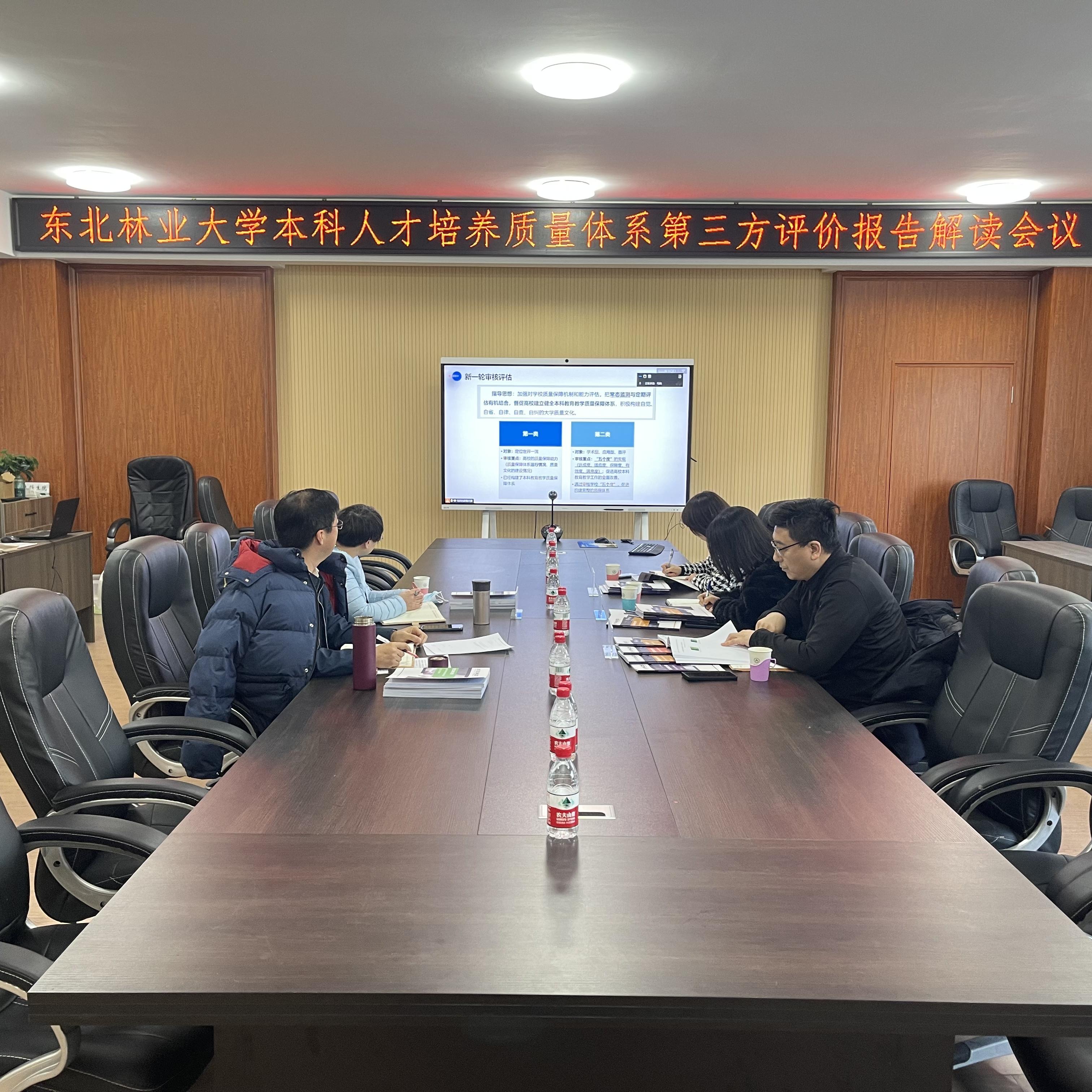 2023年12月22日上午,本科生院召开了东北林业大学本科人才培养质量体系评价报告解读会议。会议邀请了资深报告解读专家,就东北林业大学的《学生学习体验与成长评价报告》《教师教学与发展评价报告》《毕业生中期发展与培养达成度评价报告》《毕业生培养质量评价报告》和《用人单位评价报告》等为大家进行报告解读。会议由本科生院副院长兼质量管理与评估中心张佳薇主任主持,质量管理与评估中心副主任李德才,人事处副处长兼人才交流中心主任赵璐璐、就业指导与合作发展处副处长刘炜、党委学工部副部长、学生处副处长张磊和质量管理与评估中心全体成员参加了报告解读会议。