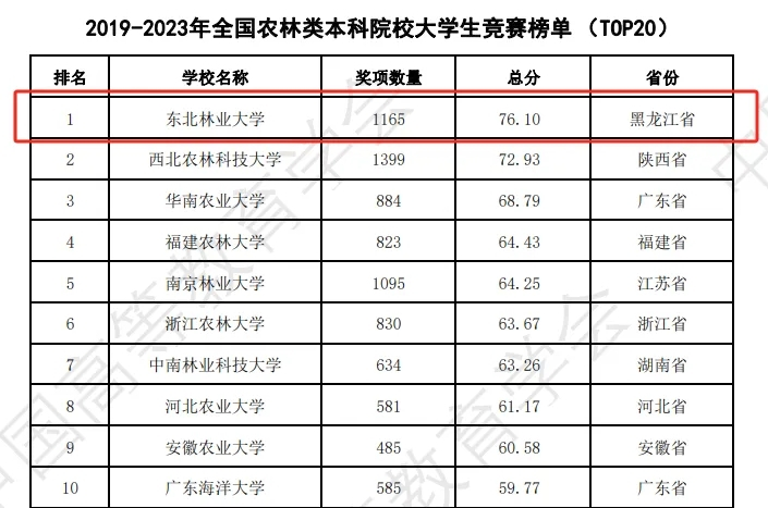 l 3月22日,中国高等教育学会高校竞赛评估与管理体系研究专家工作组发布《2023全国普通高校大学生竞赛分析报告》。我校连续六年蝉联全国农林类本科院校大学生竞赛排行榜榜首。