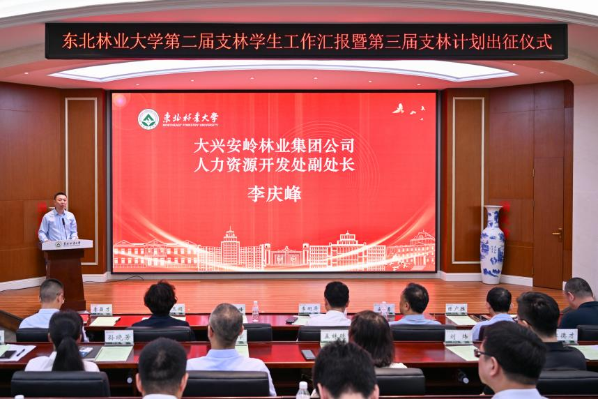 6月19日上午,学校在动保楼331会议室举办第二届支林学生工作汇报暨第三届支林计划出征仪式。合作单位代表大兴安岭林业集团公司人力资源开发处副处长李庆峰及学校党委常委、副校长李明泽出席仪式。党委组织部、党委宣传部、党委学工部、校团委、本科生院、研究生院、就业指导与合作发展处等相关职能处室领导及各学院教学院长参与仪式。第二届支林先锋队队长李千贺主持会议。