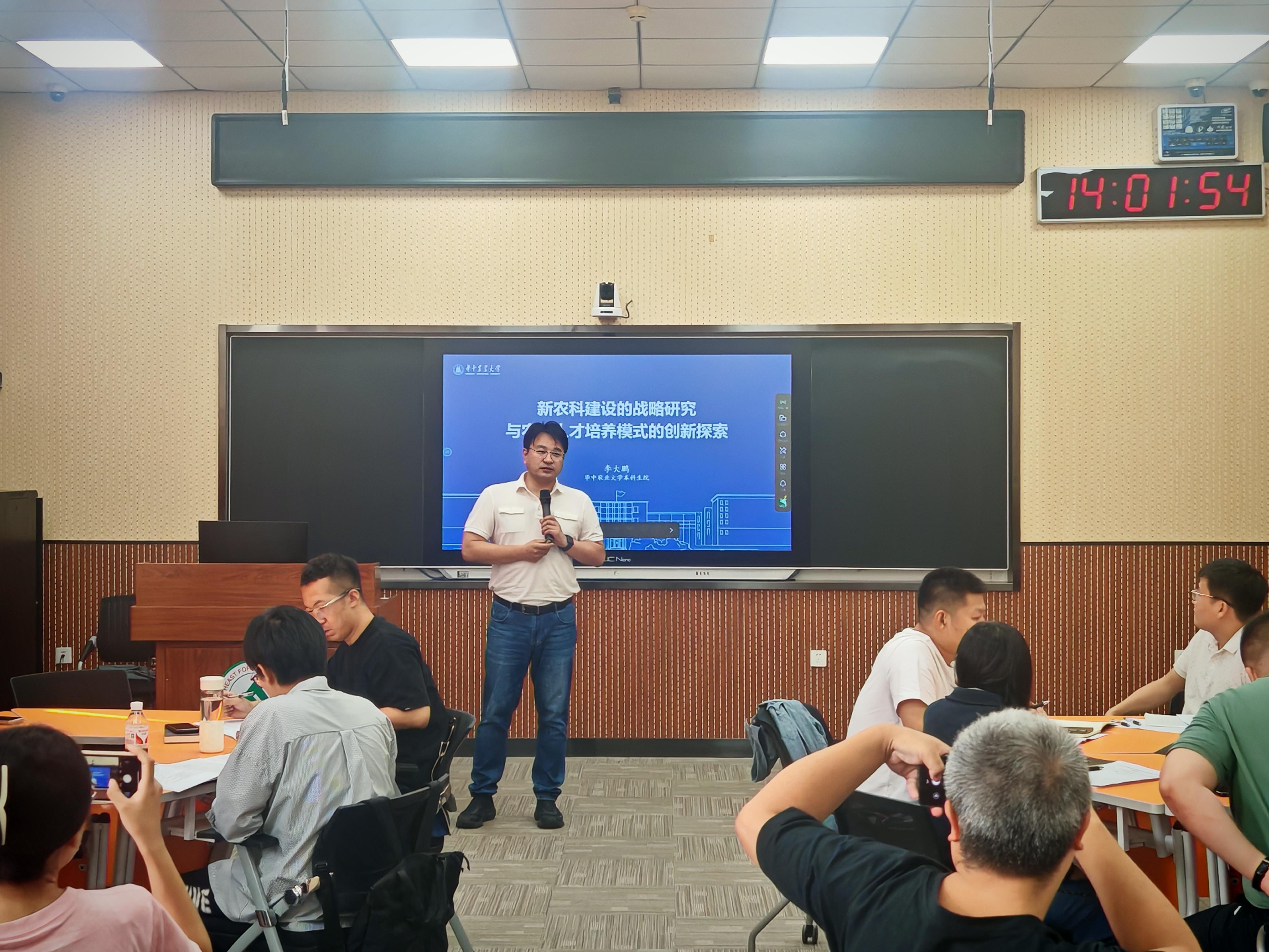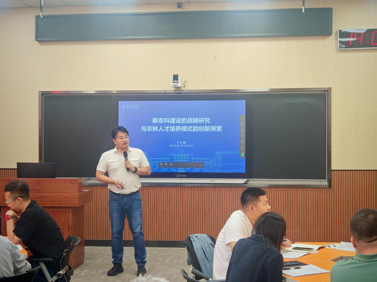 以人工智能、大数据、云计算、虚拟现实等现代信息技术正广泛深刻地推动高等教育形态改变,数字赋能新农科建设推进高等农林教育创新发展已形成基本共识。为使青年教师树立信息技术与教育教学深入融合理念,创新教育教学方式、重塑人才培养模式,9月6日,华中农业大学本科生院常务副院长李大鹏教授作题为《新农科建设的战略研究与农林人才培养模式的创新探索》的讲座,本科生招生办公室主任孙晓芳主持。