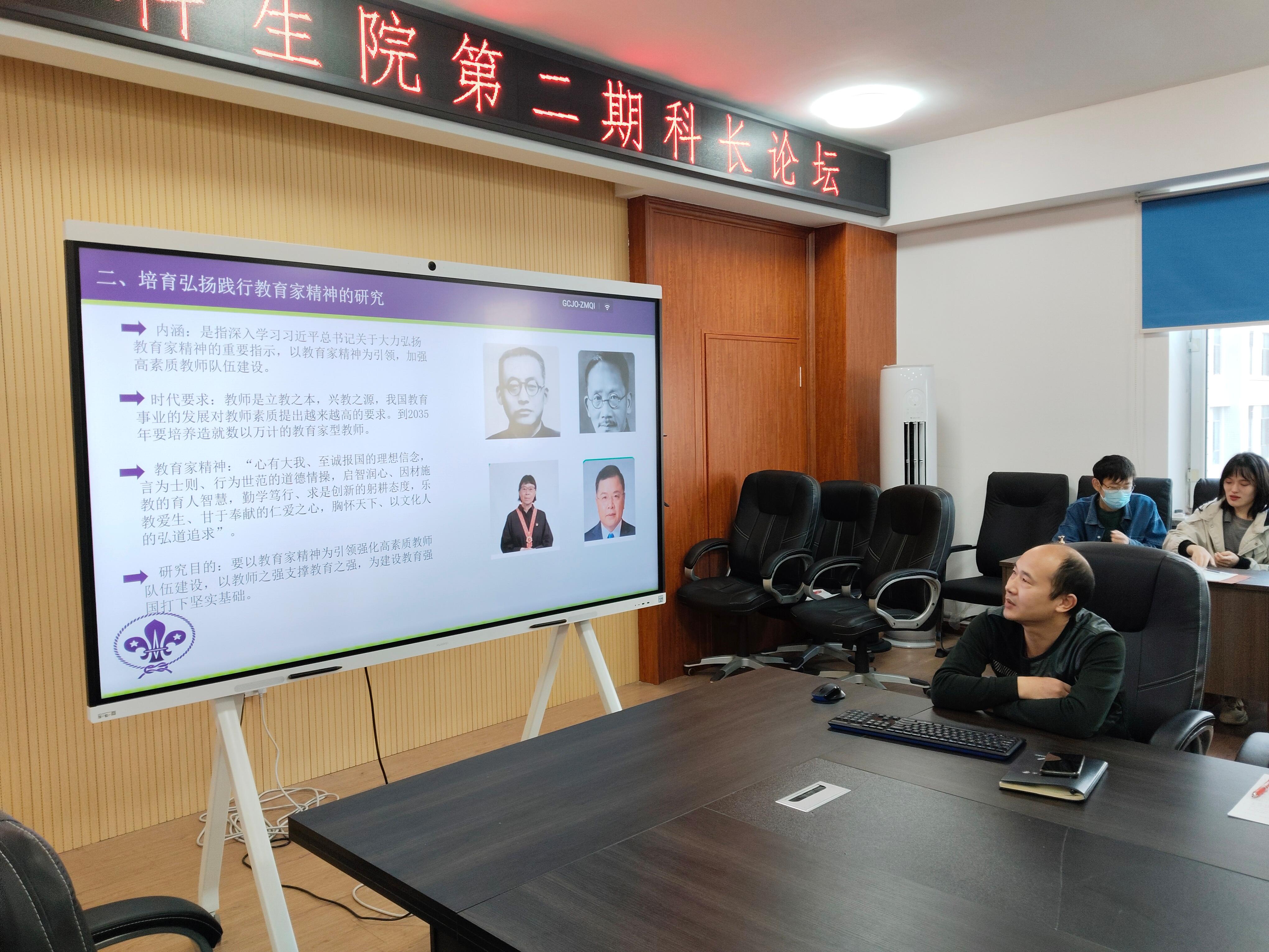为进一步加强交流、锤炼本领、树立形象,持续探索科级干部成长新模式,10月25日上午,本科生院在综合办公楼508会议室举办了以“爱岗敬业,履职尽责,推进教育教学改革高质量发展”为主题的本科生院第二期科长论坛。论坛由本科生院质量管理与评估中心副主任李德才主持,本科生院常务副院长兼教务运行中心主任安勇出席论坛并讲话,本科生院全体人员参加论坛。