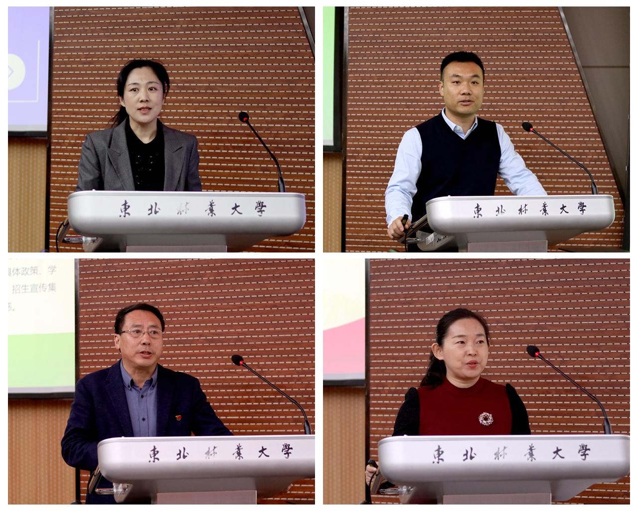 林学院副院长段亮亮、马克思主义学院党委书记吴庆禹、机电工程学院副教授李丹丹分别代表招生工作组和联络员交流了招生工作的经验和感想。