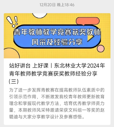 12月18-20日,发布三期“站好讲台 上好课|2024年青年教师教学竞赛获奖教师经验分享”推送。