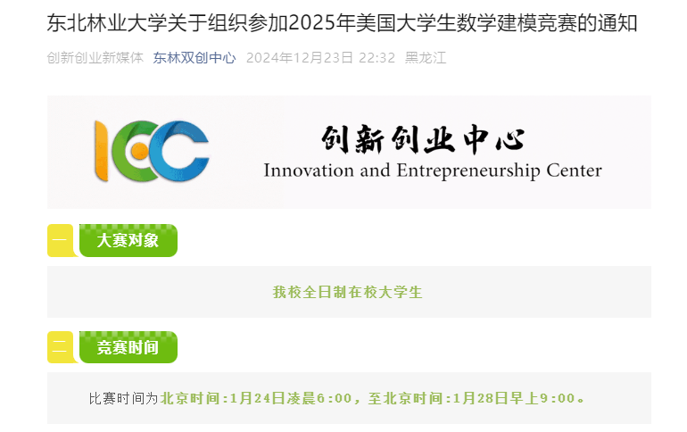12月23日,发布东北林业大学关于组织参加2025年美国大学生数学建模竞赛的通知。