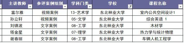 12月23日,我校课程思政案例荣获第四届全国高等农林院校课程思政优秀案例,《室内公共空间设计1》、《综合英语1》获评优秀视频案例,《木材学》、《热力学与统计物理》、《车辆人机工程学》获评优秀文字案例。