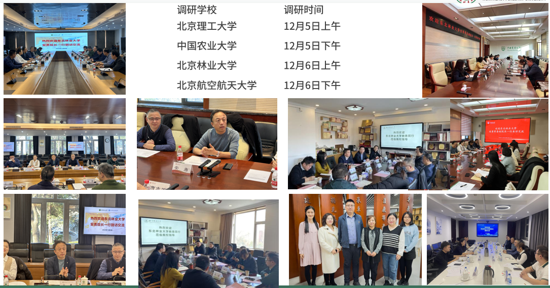 12月5日-6日,安勇院长带队对北京理工大学、中国农业大学、北京林业大学、北京航空航天大学进行调研。