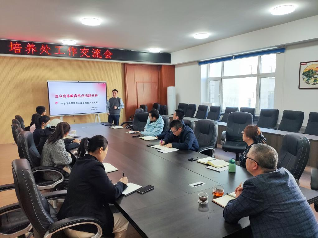 为深入学习《教育强国建设规划纲要(2024-2035年)》,提升业务能力水平,赋能学校高质量发展,3月14日上午,培养处在综合办公楼508召开学习交流会。培养处挂职副处长刘天教授做了题为《当今高等教育热点问题分析》的报告。培养处全体成员参加学习交流。