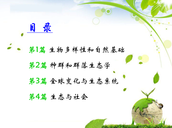 课程内容涵盖生态学的基本概念、原理与思想,以及生态学的最新进展和人类面临的主要生态问题及对策。