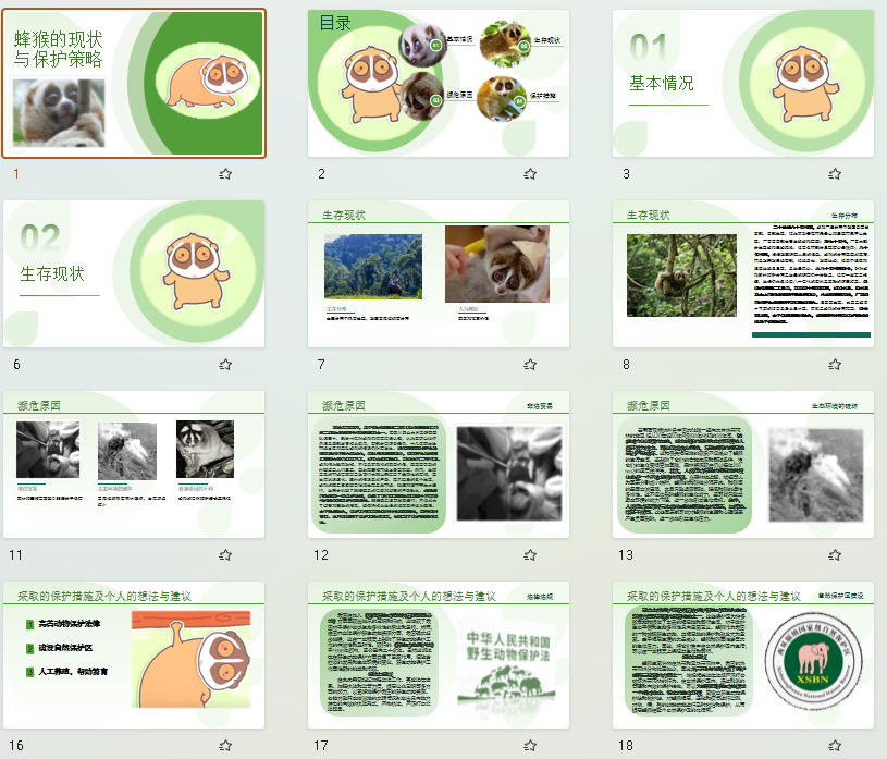 课内实践:通过查阅文献,网络资源,图片视频或实地观察等,对濒危物种或被破坏的现状、产生原因和保护措施进行分析,强化理论知识与实践的结合。