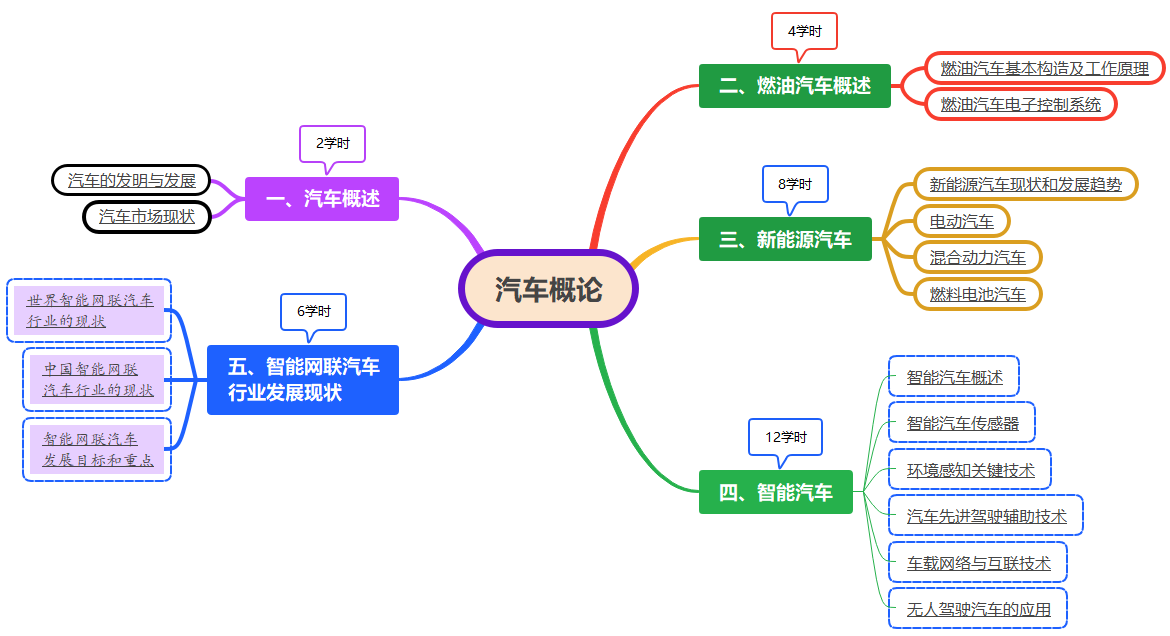 《汽车概论》课程是为全校本科生开设的公共选修课,进行了大学基础知识学习后的学生均可选修本课程。课程主要内容包括:汽车的发明与发展现状、燃油汽车基本构造和电子控制系统、新能源汽车概述、智能汽车概述及关键技术、智能网联汽车及相关行业的现状及发展趋势分析。汽车已经成为人类生活中必不可少的交通工具,智能汽车的高速发展更是为驾乘人员带来全新体验。本课程旨在普及现代汽车的基本知识,拓展学生对汽车及相关行业的认知,理解汽车在国民经济和生活中的重要地位,增强学生的民族自信心和自豪感。使学生掌握现代汽车的分类及行业现状,掌握燃油及新能源汽车的基本结构和原理;了解智能网联汽车的关键技术及前沿动态。培养学生利用多学科交叉融合的思维能力,激发学生投身汽车强国建设和报效国家的热情,为学生的职业规划提供新思路。
