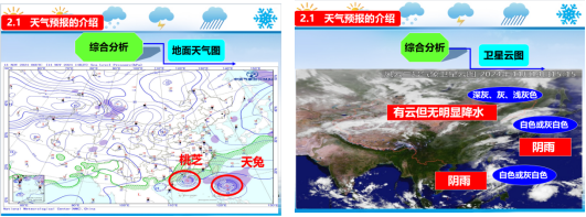图1 地面天气图和卫星云图的介绍