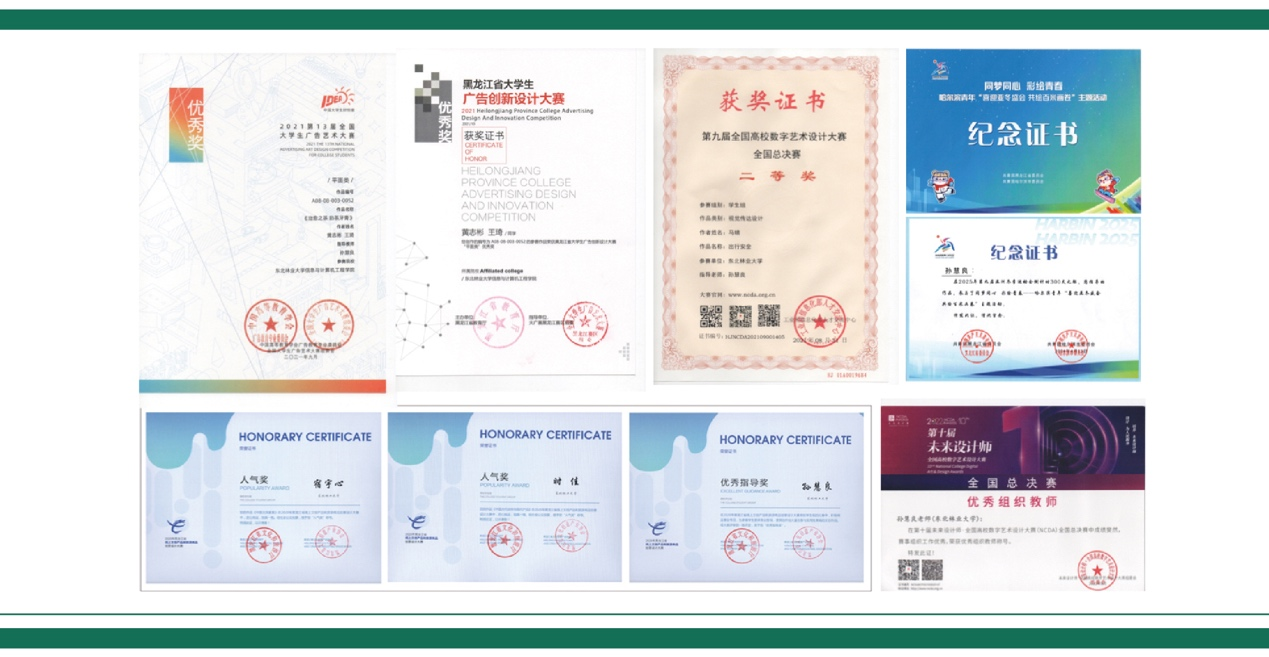 2.育人成效与价值:开拓学生视野,激发学生的创意思维能力和设计语言的学习热情,加强学科之间的交流与合作,树立正确的设计观念,培养学生的美育意识和审美能力,不断提高艺术修养,展现个人综合能力,以适应社会发展的需求。不负韶华提素质,服务社会做贡献,充分展示实践创新能力,课程及作品屡获殊荣,实践成果助力地域文化创意产业发展。从素养、知识、能力,培养学生“家国情怀与责任担当兼备、科学素养和工程能力互济、创新性和批判性思维并重、追求卓越与团结协作融合”的能力与素质,全面构建全人化培养的素质图谱,提升人才培养质量,深化教学改革,丰富课程实践成果,探索通识教育发展的新方向与新目标。