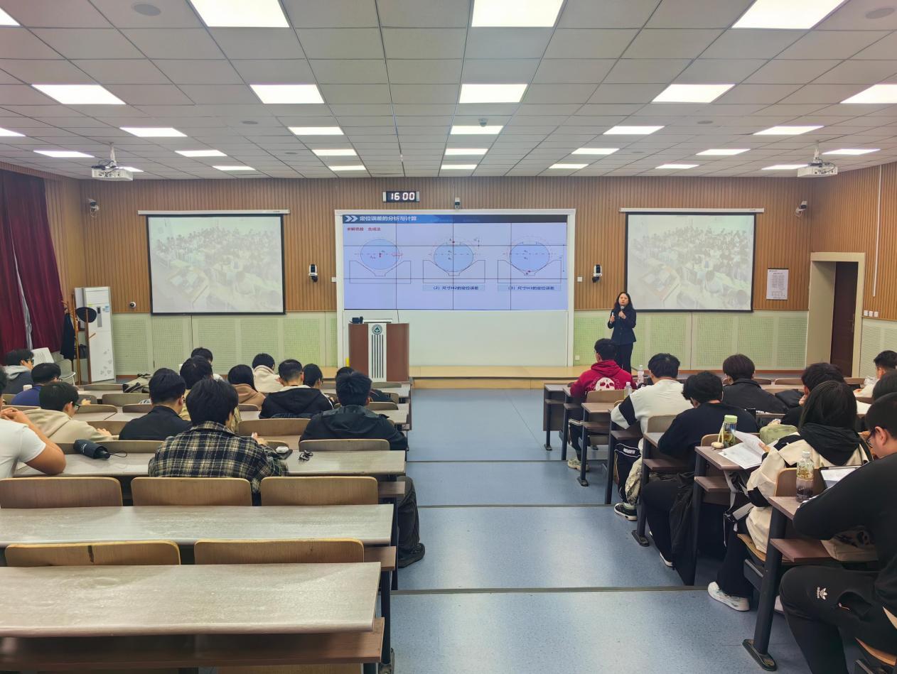 在同步课堂上,来自机电工程学院的贾娜老师先是带领同学们回顾了前期课程重要内容,梳理了“工件定位”的相关知识,为导入本节课的主讲内容做好铺垫,随后开始讲解本次同步课堂的主要内容“定位误差的分析与计算”。贾老师首先介绍了“定位误差”的概念,然后讲解了“定位误差的几何算法”,其中包括“定义法”与“合成法”,以及“定位误差的微分算法”,随后进行单一面、组合面的误差分析,最后综合运用本节课程的知识点进行定位误差计算并判断定位方案的合理性。