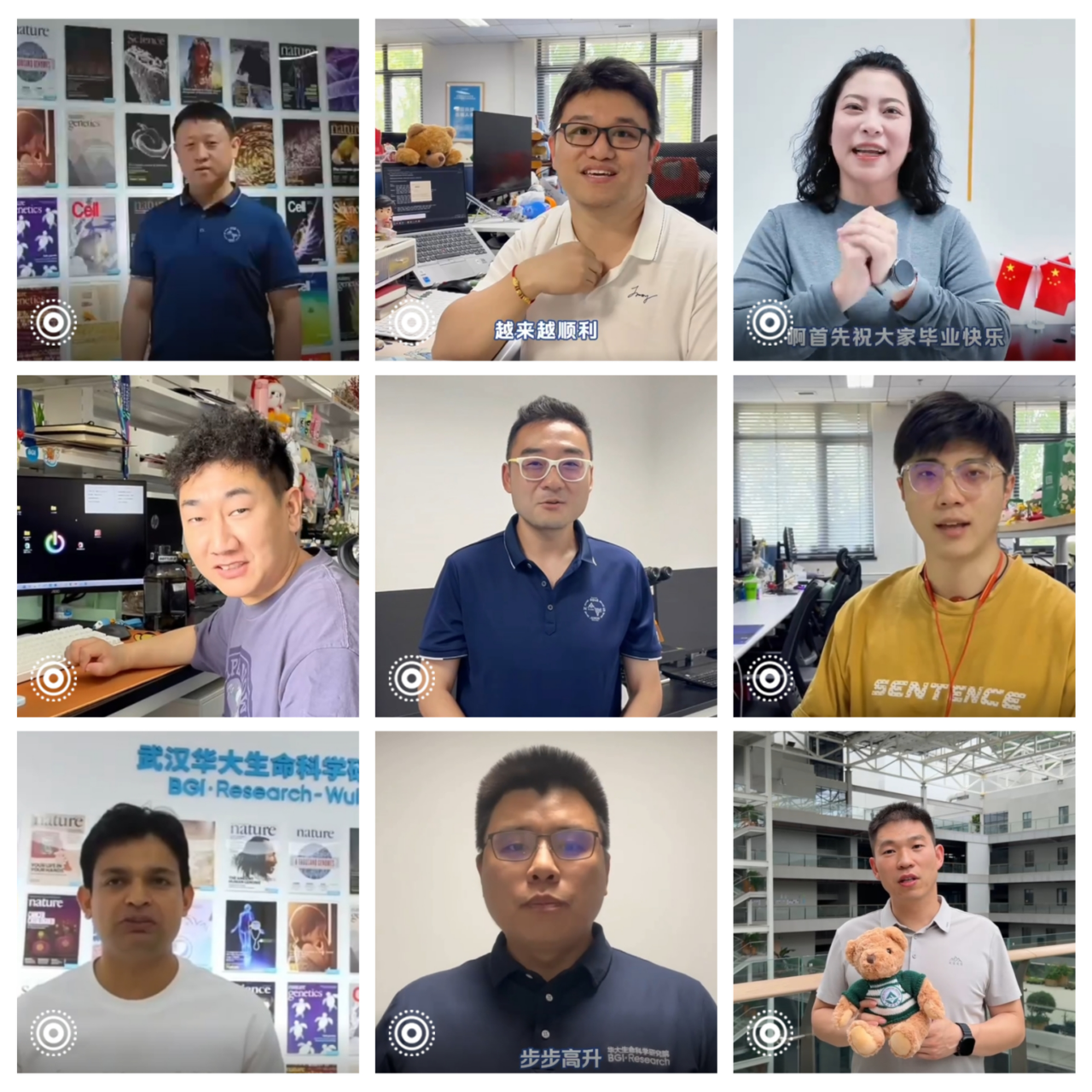 华大基因教师代表—魏桐、Sahusunil Kumar、王思博、张海波、崔琦、邓博予、孙海汐、丁林等九位教师通过线上方式,向学生们表达了诚挚的祝福。肯定了同学们过去一年的奋斗拼搏与成长进步,对大家在联合培养期间的卓越表现和良好精神风貌给予了高度评价,对即将开始联合培养的学生表示热烈欢迎,祝愿大家心想事成、“一路开挂”。