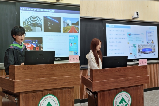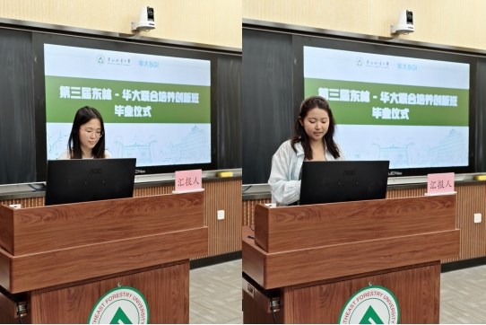毕业生代表朱艺涵、谢文静两位同学从向内探索、向外拓展、向上攀登三个维度,生动分享了联合培养期间在学习、科研以及文化活动等方面的经验与收获,讲述了如何从初到华大的稚嫩青涩走向成熟,最后成为导师得力助手的点滴经历,表达了对母校和华大的感谢之情,并表示在未来会持续保持热爱、心怀梦想、砥砺前行。