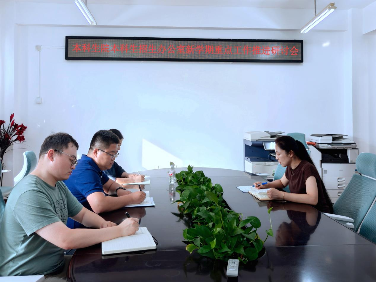 为深入贯彻落实学校第十四次党代会精神,部署新学期重点任务,进一步提升本科招生工作的针对性和实效性。9月3日下午,本科生院本科生招生办公室在综合办公楼514会议室召开新学期重点工作推进研讨会。