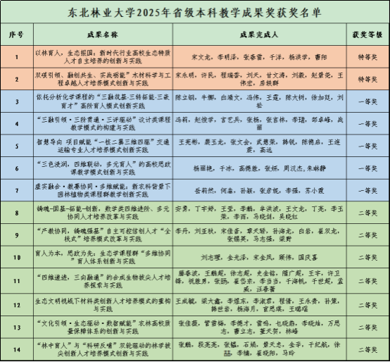 学校将以此次获奖为契机,锚定国家生态文明建设与区域经济社会发展需求,全面贯彻落实学校第十四次党代会精神,持续深化教育教学综合改革,发挥优秀教学成果的示范引领效应,着力完善人才自主培养体系,不断提升人才培养质量和办学水平,以更高标准、更实举措推进以林科为优势的中国特色世界一流大学建设。