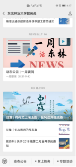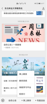 2、进入东北林业大学教务处公众微信号,点击最下方“掌上教务”,点击教务系统。