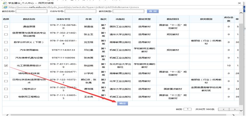 4.进入选择教材页面,选择需要的教材点击确定,填写教师用书册数,信息核对后送审。至此教师端选择教材环节结束。