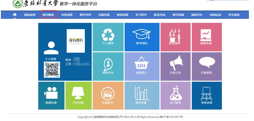 1.登录系统后选择【教学服务】菜单进入。