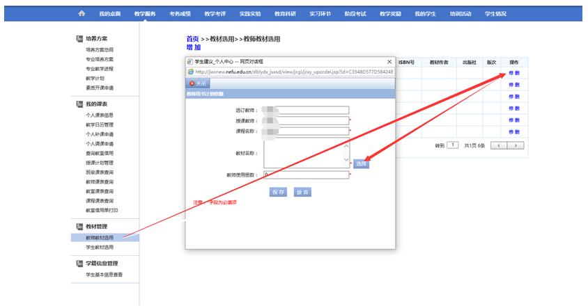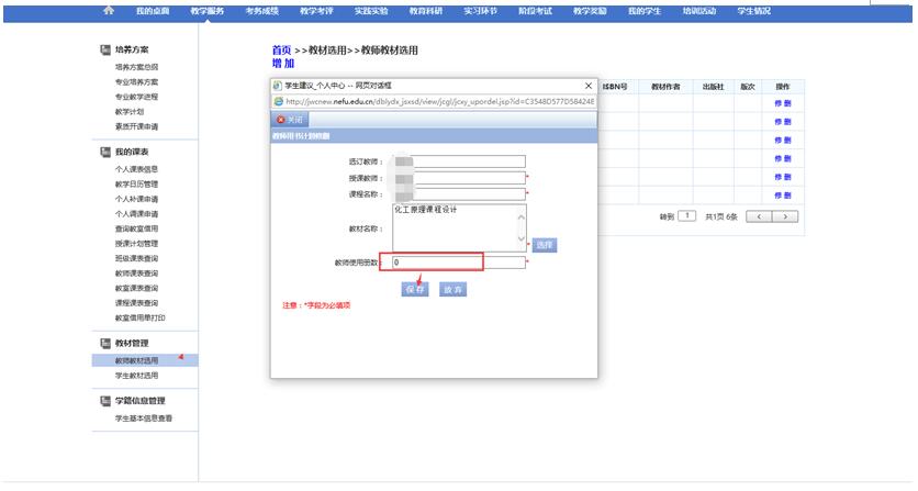 7.同一门课程、同一批学生涉及到多条任务的,填一个讲课任务的教材即可。