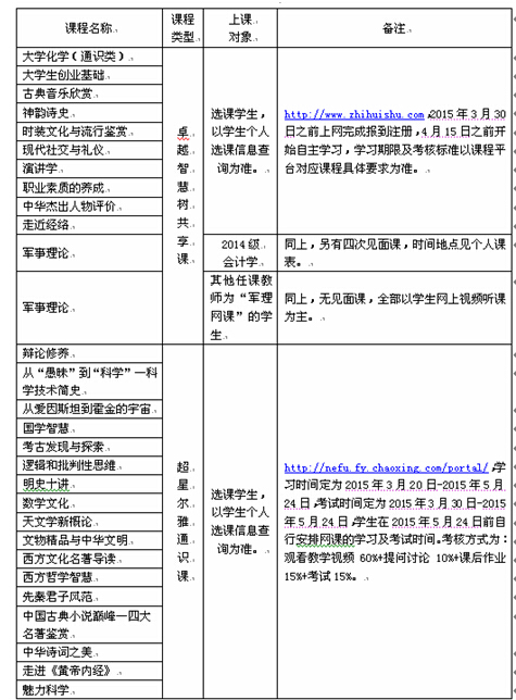表1 东北林业大学2014-2015学年第二学期网络课程目录
