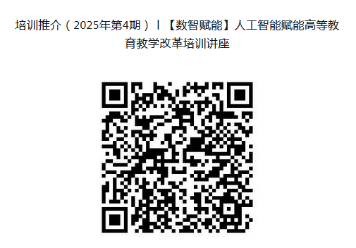 为帮助我校教师深耕高等教育数字化转型、人工智能赋能教育教学改革,教师教学发展中心持续推出数智赋能系列专题培训。现对第4期专题讲座事宜安排如下: